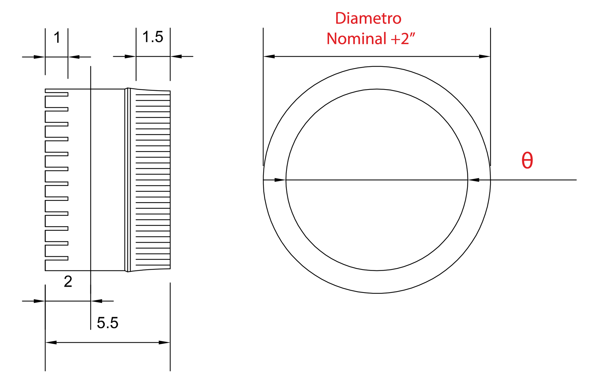 Se fabrica desde 4 hasta 22 pulgadas de diámetro.