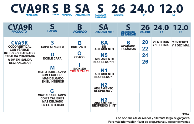 *Opción con aislamiento de fibra de vidrio con neopreno interior (duct liner).