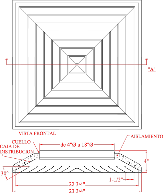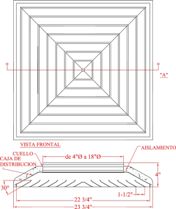 Inicio → Productos → Difusores → Difusores para Plafón → Difusor de Aire DPFA Acero/ DPFL Aluminio → plano-F4PA