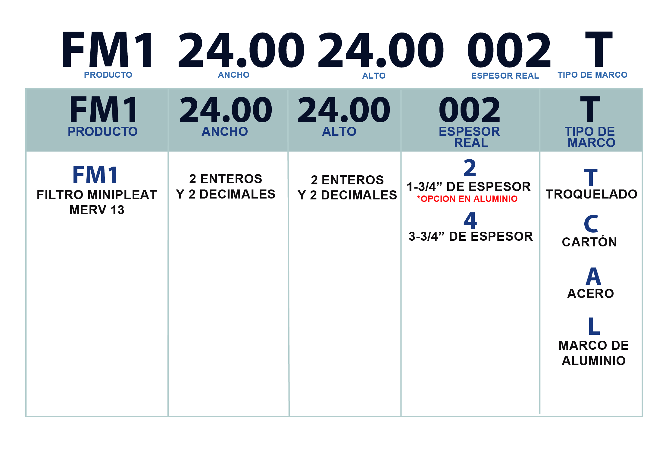 Los filtros Minipleat están fabricados con un marco reforzado de cartón de doble pared o marco de metal calibre 26 con media filtrante tipo nanotech con separadores termoplásticos