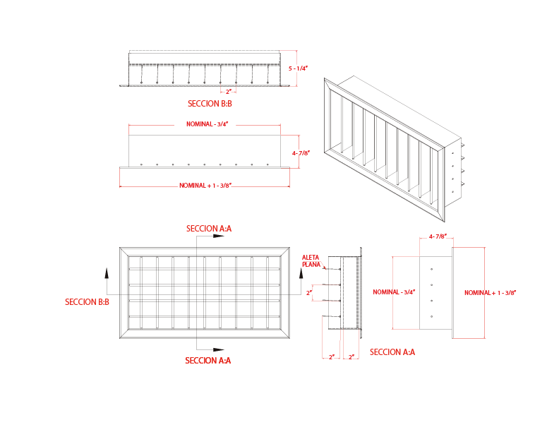 Fabricada con Marco de acero y aletas de acero de 2″. Mod. ID2A y en Modelo ID2L con marco de Aluminio y aletas de aluminio de 2″